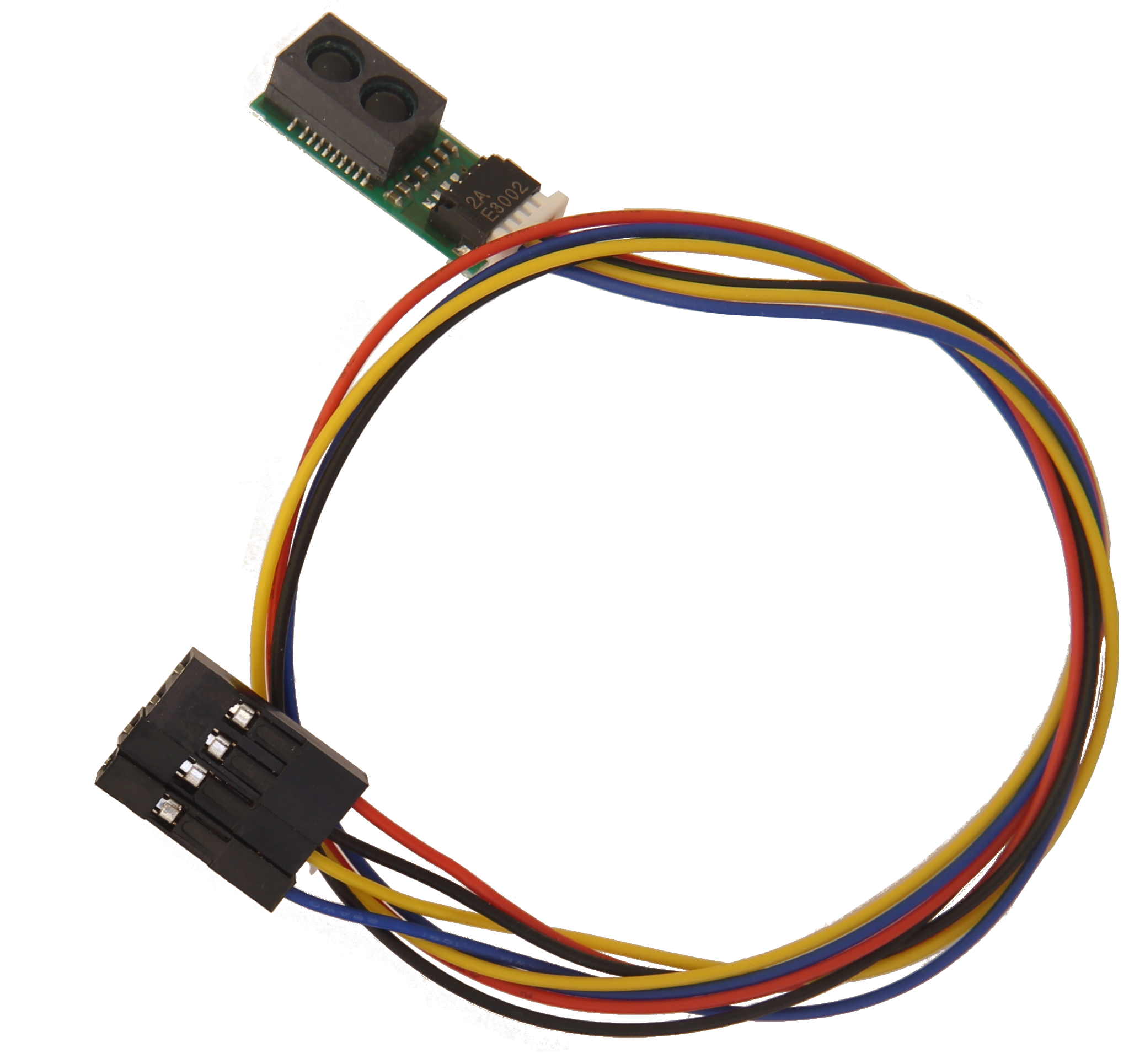 Infracrveni senzor udaljenosti. Napon 2.7 - 3.3 V. Mjeri intenzitet odbijene svjetlosti, ne vrijeme, pa je netočniji od lidara. Kabel 15 cm. Dupont 0.1" konektor. Udaljenost 4 - 50 cm.