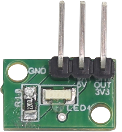 Senzor za detekciju crno - bijelo - srebreno. Koristi operaciono pojačalo. Napajanje 3.3 V. Analogni izlaz 3.3 V. Pogodan za robota koji prati liniju i slično. Dupont 0.1" pinovi.