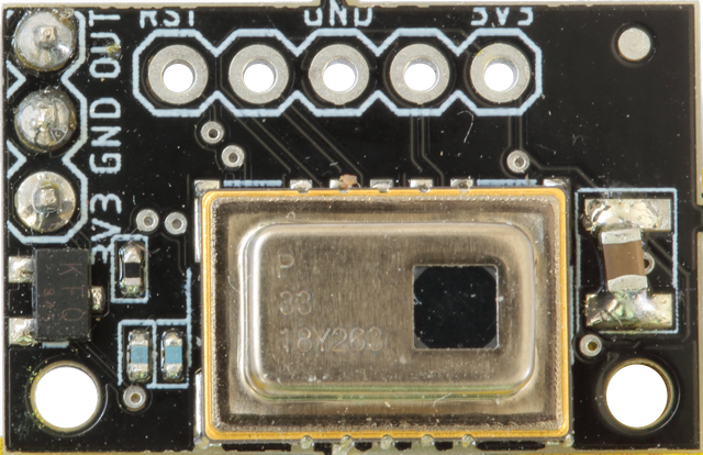 Termalno polje. Mjeri 8 × 8 (64 točaka). Napon 3.3 V. I2C sučelje. Tipično pokriva 60°. Mjeri −20 °C - 100 °C. Napajanje 3.3 V. Svi su pinovi 0.1" Dupont. Detekira čovjeka na 7 m. Tipično 10 m mjerenja u sekundi.