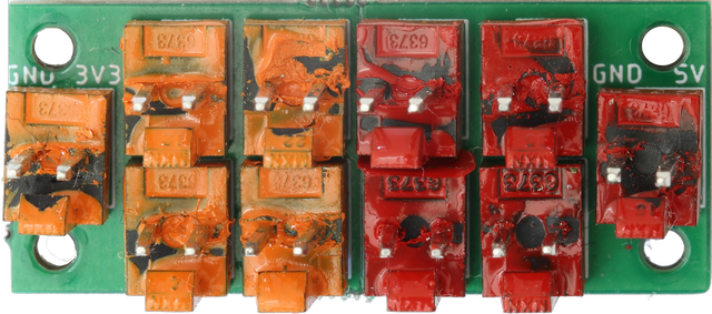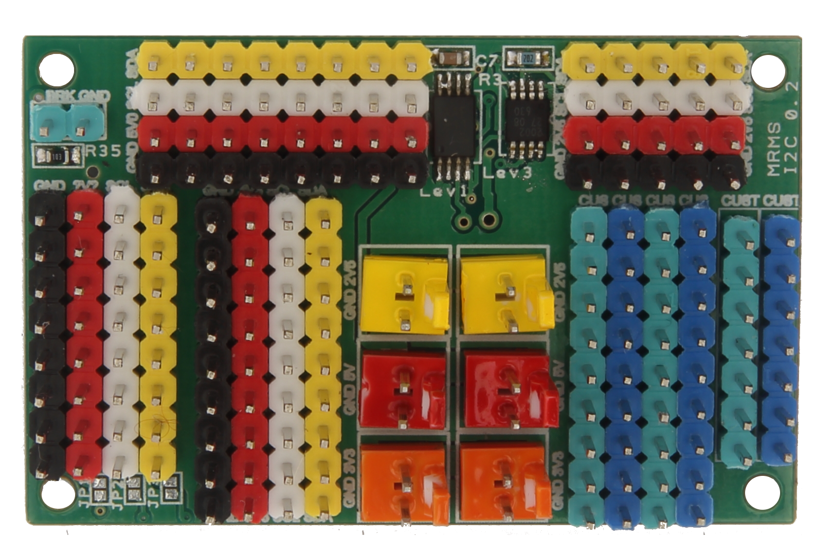 Razvod I2C sabirnica i napona 2.5, 3.3 i 5 V. Čip za prilagodbu napona (level shifter) između 2.5, 3.3 i 5 V I2C sabirnica. Svi pinovi su na 0.1" razmaku